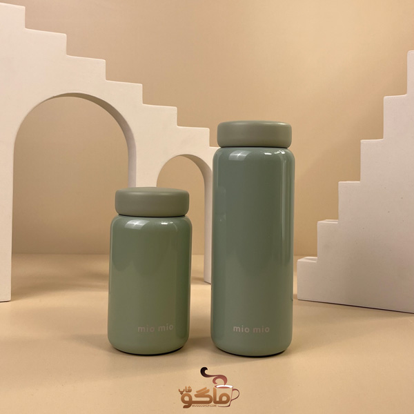تراول ماگ میو میو از جنس استیل 316 از زنگ ساخته شده و در دو سایز مینیمال(200 میل) و 320 میل عرضه شده است.